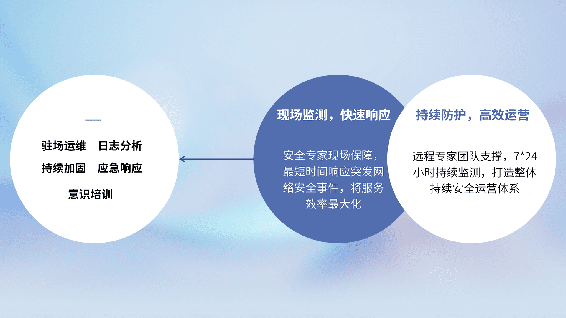 7X24小时持续监测安全事件,保持安全策略有效性,降低资产脆弱性风险,,精准拦截黑客攻击,,减少被黑客利用的机会,,,第一时间遏制,,降低损失。。。。